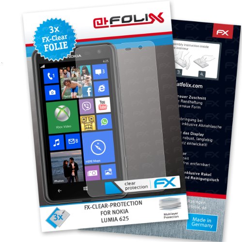 atFoliX FX-Clear Protection d'écran pour Nokia Lumia 625 (3 pièces) - protection d'écran ultra-claire!