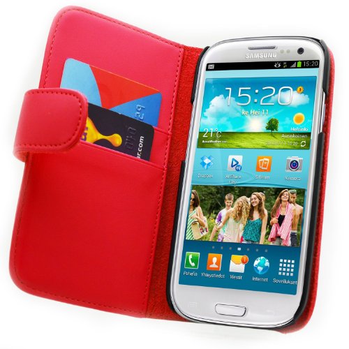 JAMMYLIZARD | Housse en cuir exclusive avec deux poches pour vos cartes bancaires pour Samsung Galaxy S3, protège écran inclus (ROUGE)