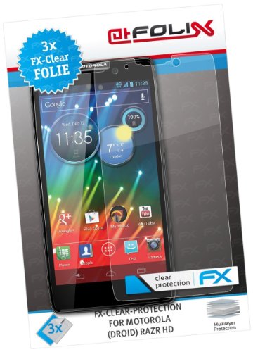 atFoliX FX-Clear Protection d'écran pour Motorola (Droid) Razr HD (3 pièces) - protection d'écran ultra-claire!
