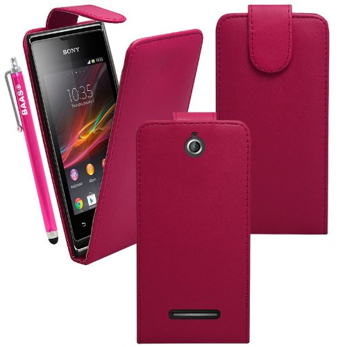 BAAS® Coque Sony Xperia E Rose Etui Cuir Clapet Housse + Film de Protection d'Ecran + Stylet Pour Ecran Tactile Capacitif