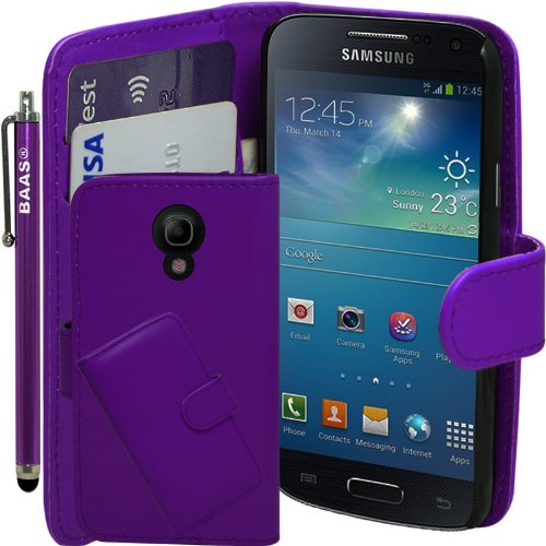BAAS® Samsung Galaxy S4 Mini i9190 Violet Etui Housse Coque en Cuir Portefeuille + Stylet Pour Ecran Tactile + 2 x Film de Protection d'Ecran